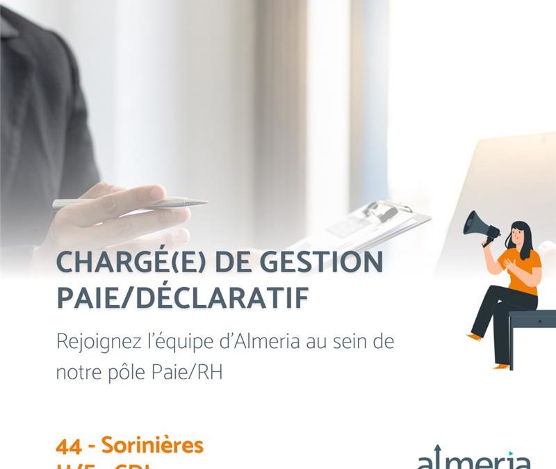 Afin d’accompagner la croissance du Pôle Paie / RH, composé de 7 collaborateurs, Almeria recherche un(e) Chargé(e) de gestion paie/déclaratif.