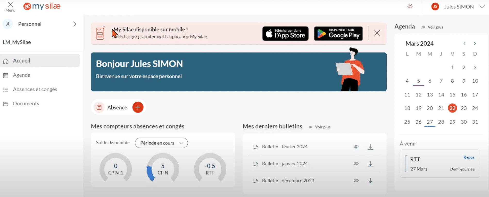 My SILAE permet aux salariés de soumettre leurs demandes de congés ou absences en quelques clics. Les managers reçoivent des alertes et peuvent valider les demandes facilement depuis leur tableau de bord.